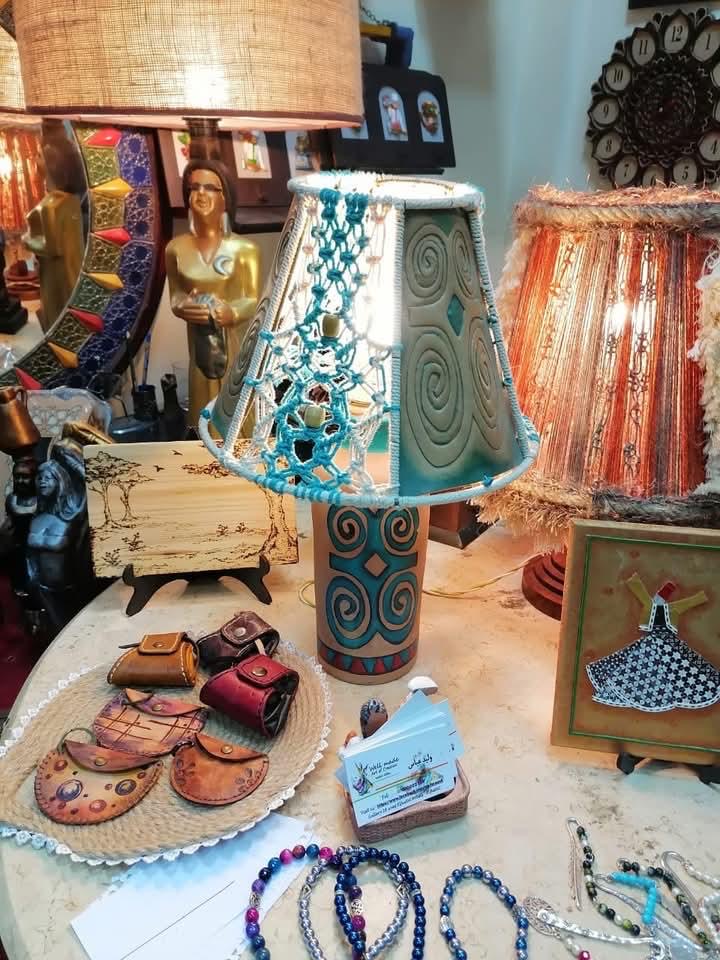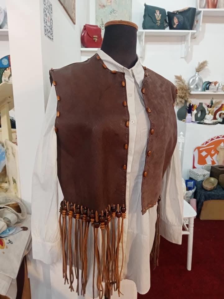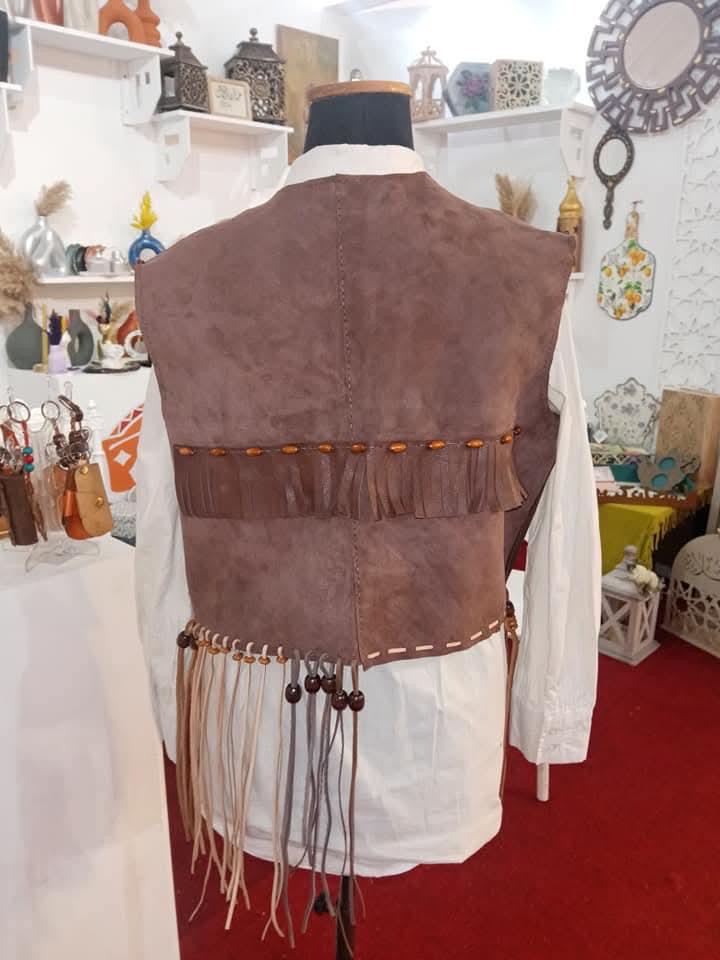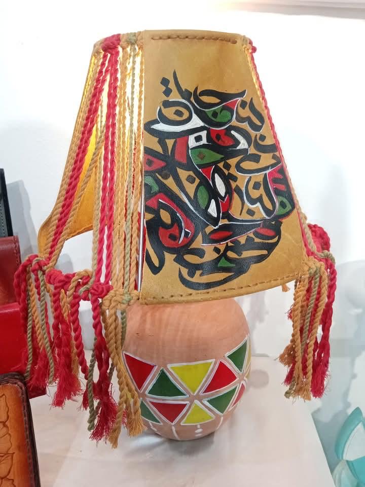 مصنوعات جلد طبيعي فيستات .. حقائب.. اباجورات كل ما بتعلق بالديكور بيتم تنفيذه من الجلد اكسسوارات